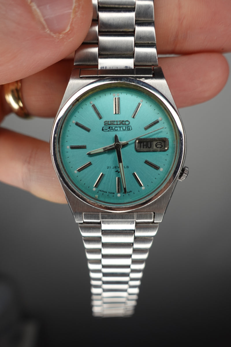 Seiko 5 Actus Automatic 21 Jewel Day Date Tiffany Blue Dial 7009-821J - Vintage