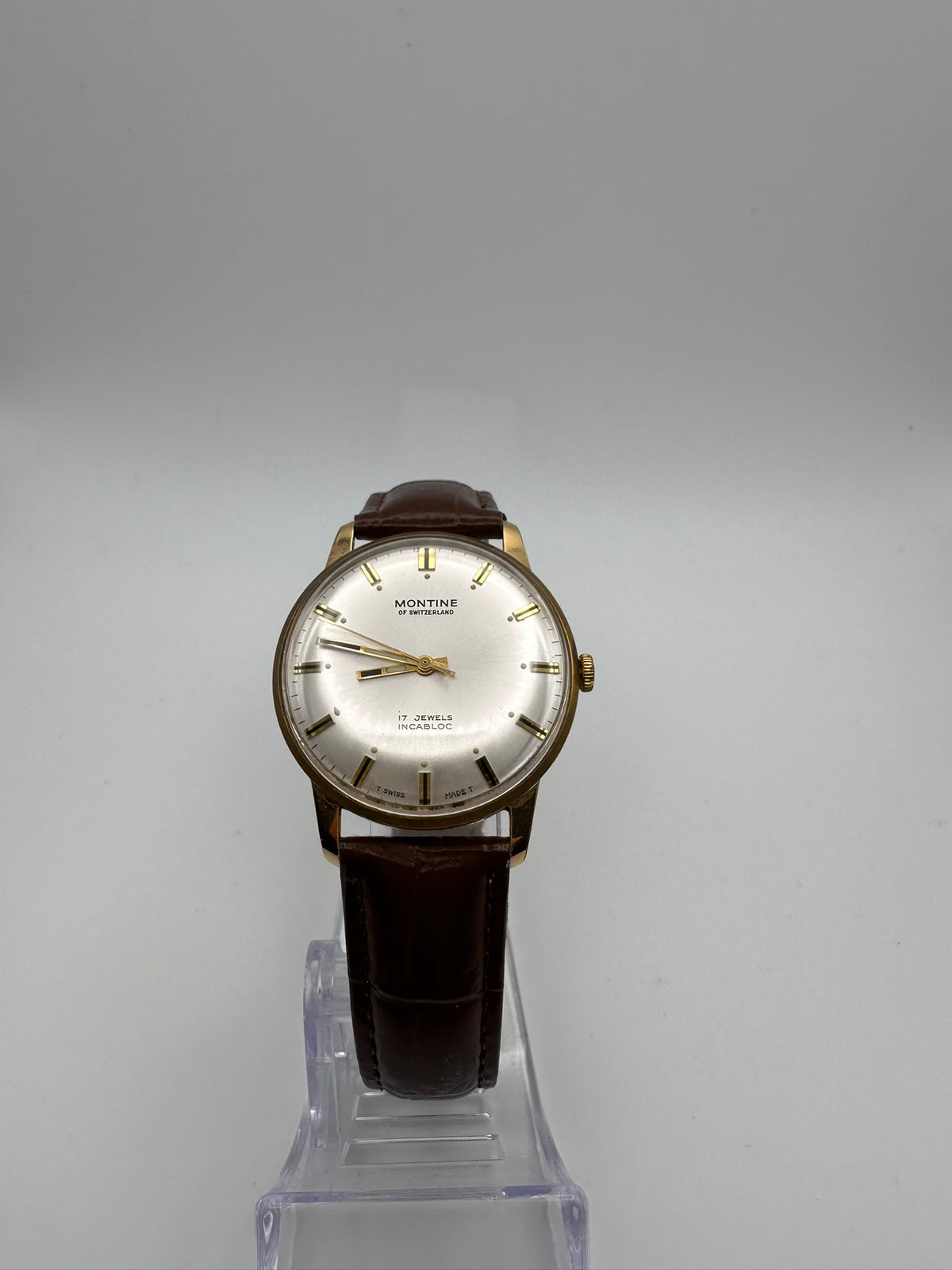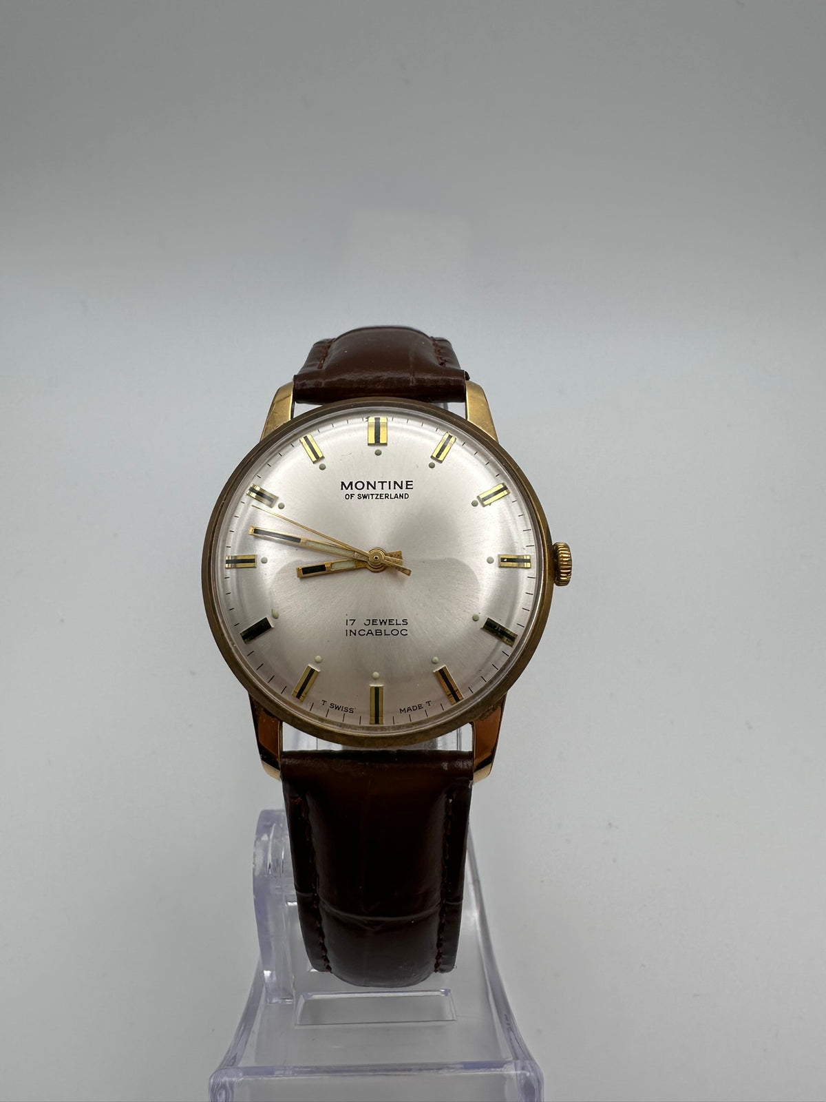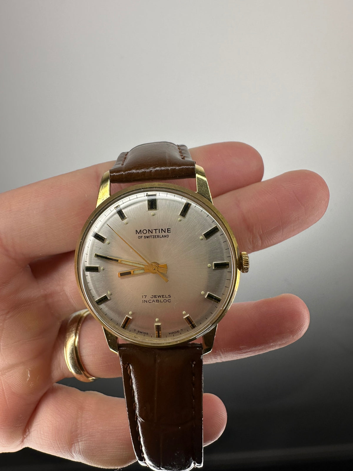 Vintage Montine of Switzerland 17 Jewel Mechanical Manual Gold Tone Champagne Dial Men's Watch