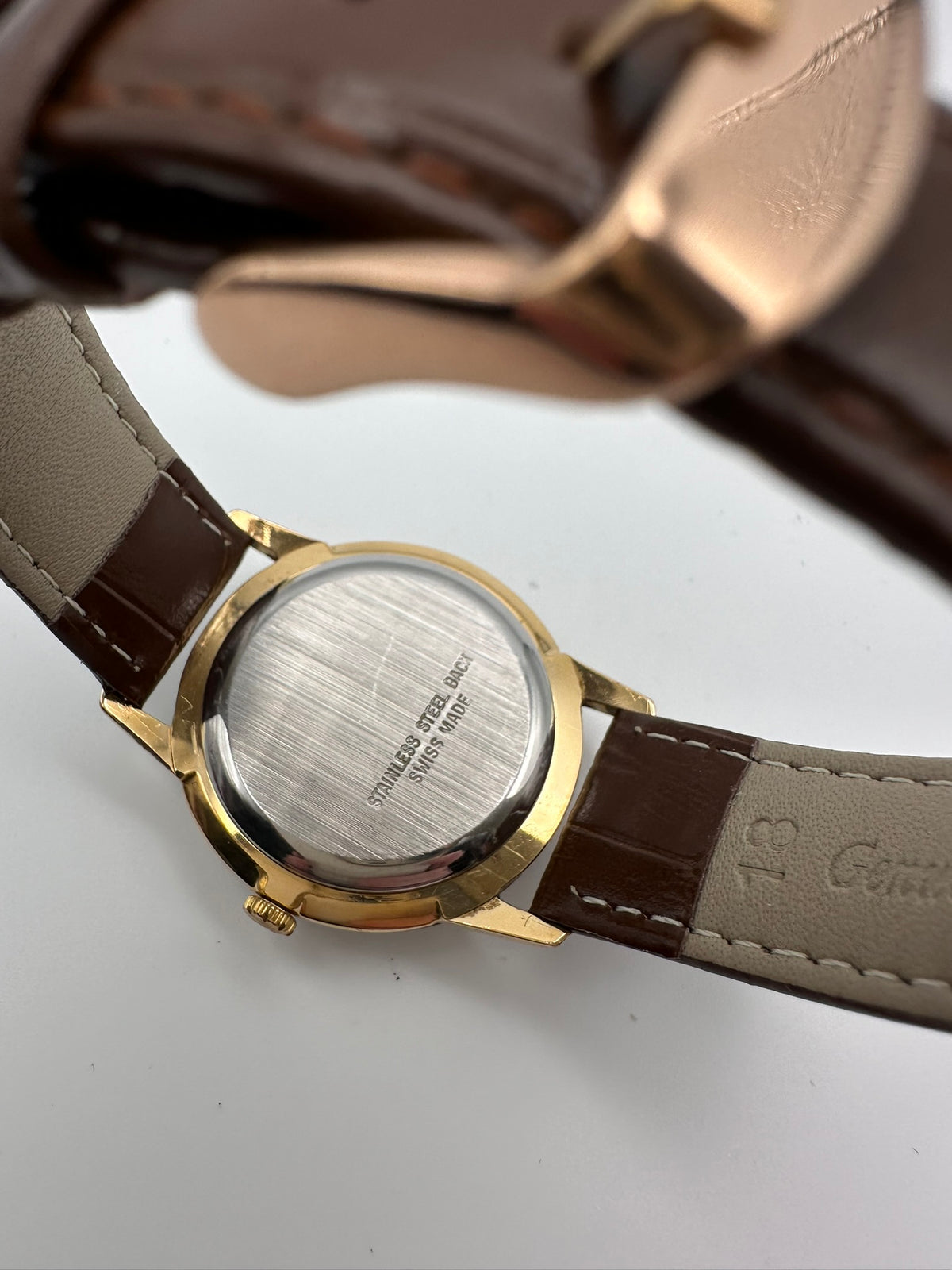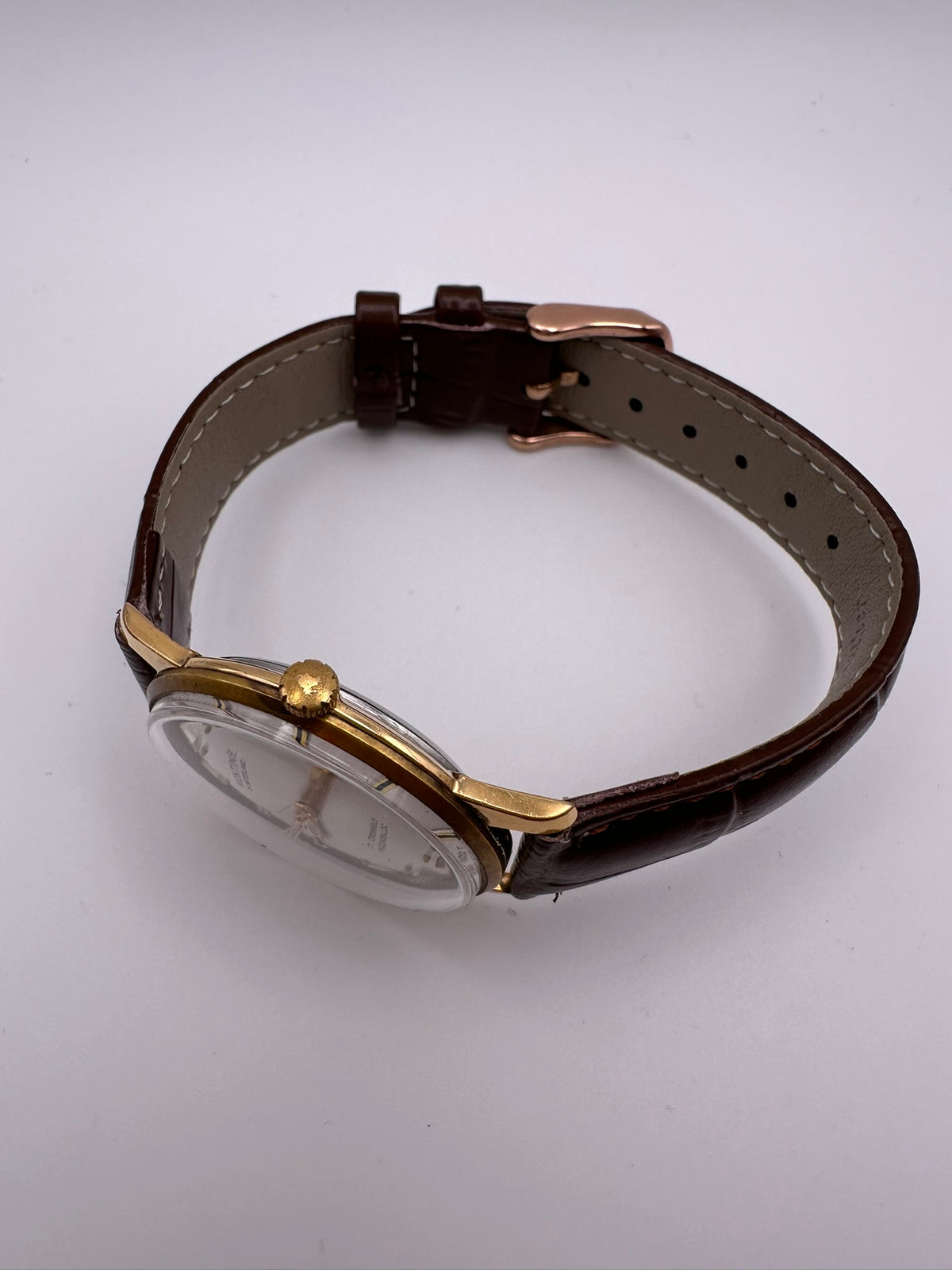 Beautiful 1960s mechanical hand wind watch with a new crystal and leather bracelet fitted.