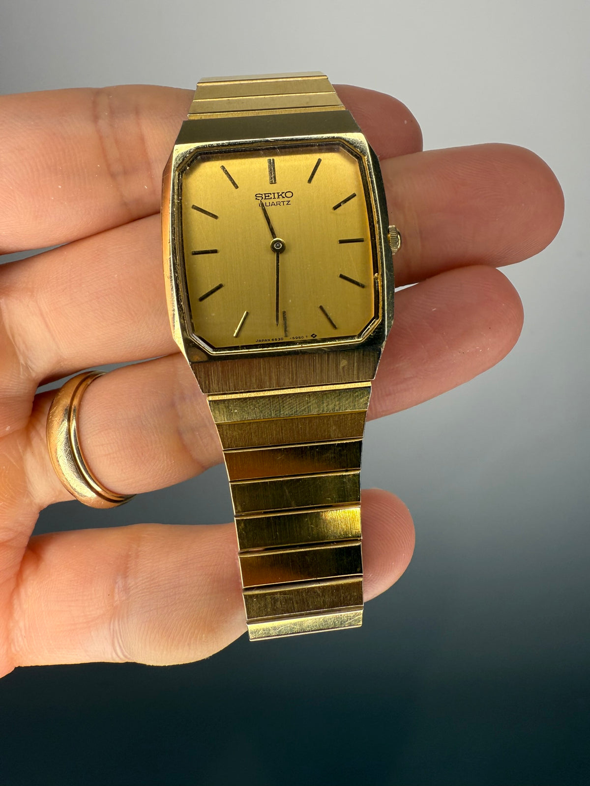 Vintage Seiko Cartier Style Tank 6530 5530 Quartz Men's Watch