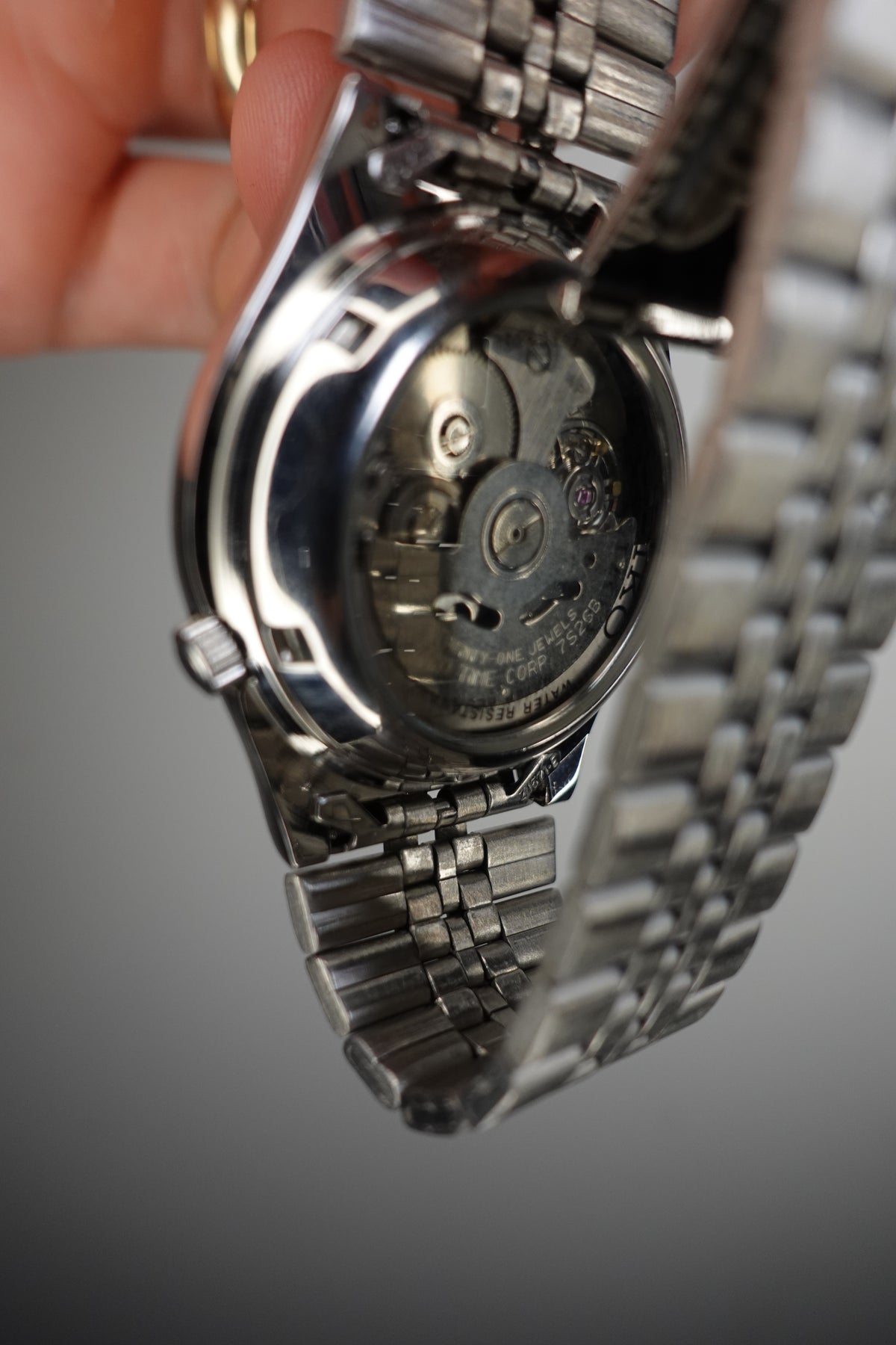 The watch is a excellent example of a modern Seiko 5, the case and crystal are in superb condition, complete with exhibition case back and its original bracelet.