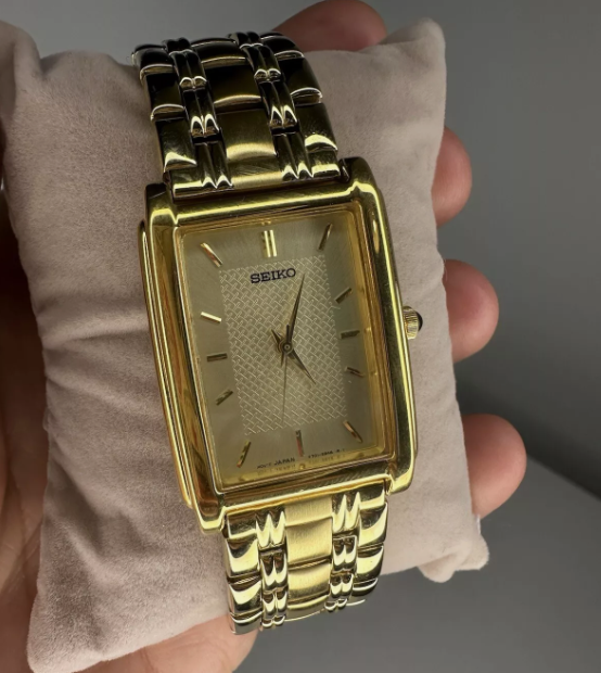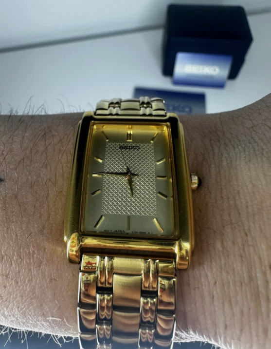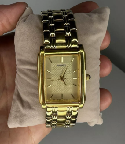 Pre-Owned Seiko V701-5E49 Quartz Gold Tone Gold Dial Men's Watch With Box & Guarantees