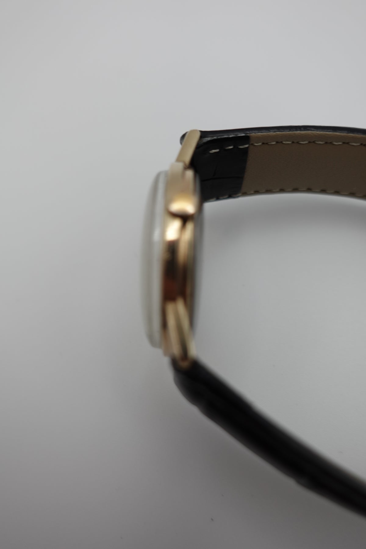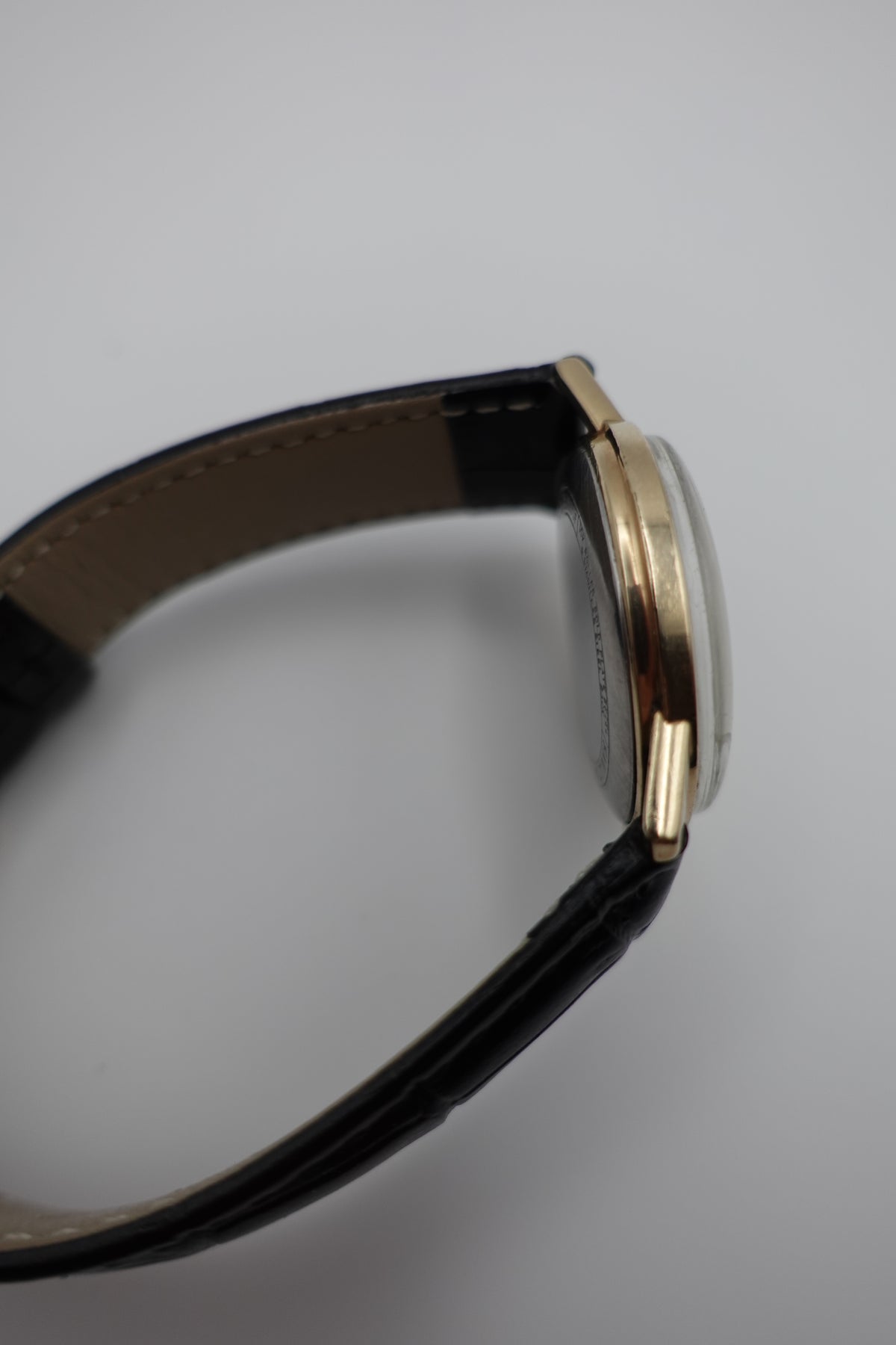Beautiful dress watch with a 10K rolled gold plate case and new black leather strap.