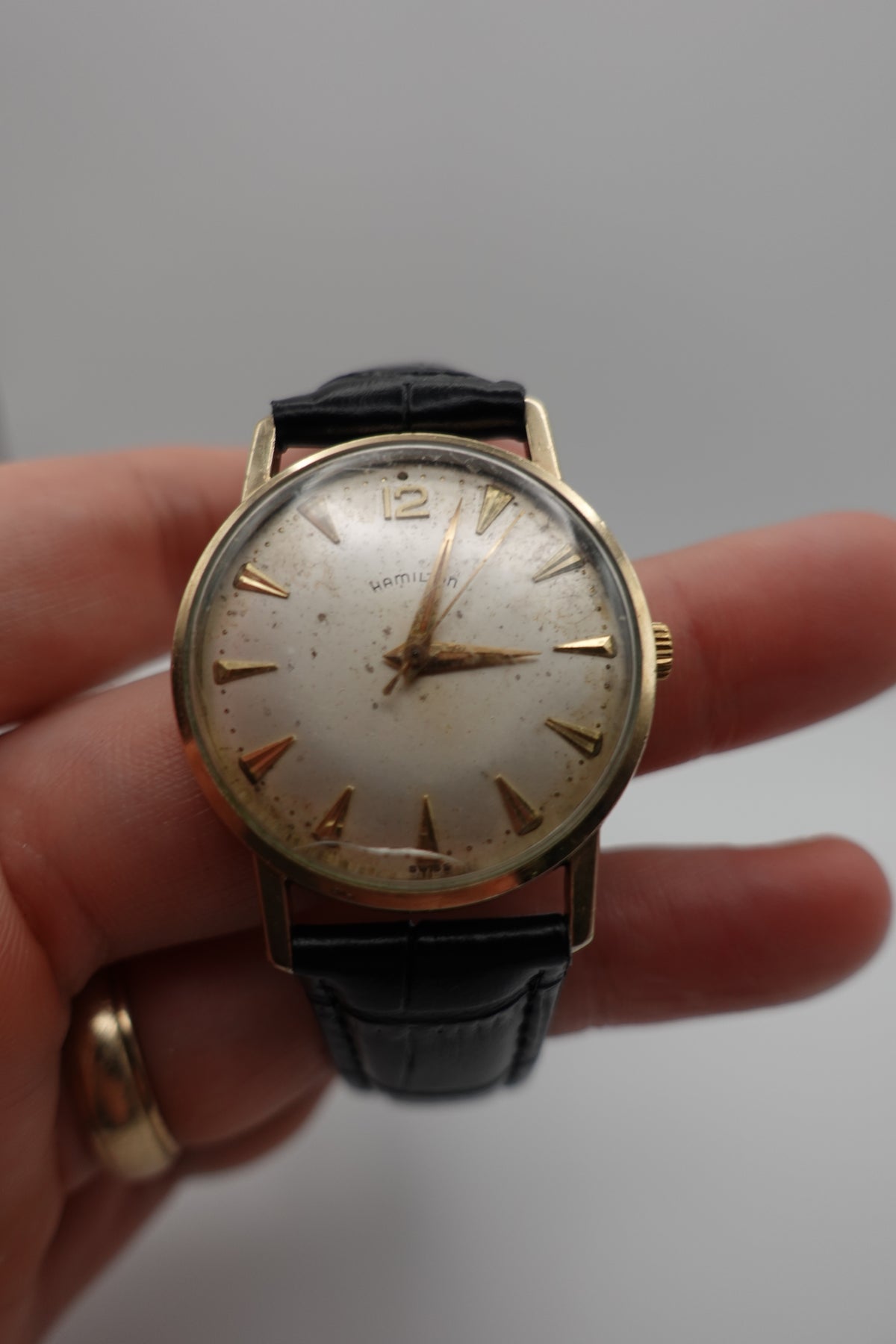 Estimated to be from the late 50s or early 60s as it is a Swiss movement within the watch, most likely from the period shortly after Hamilton moved production to Switzerland.