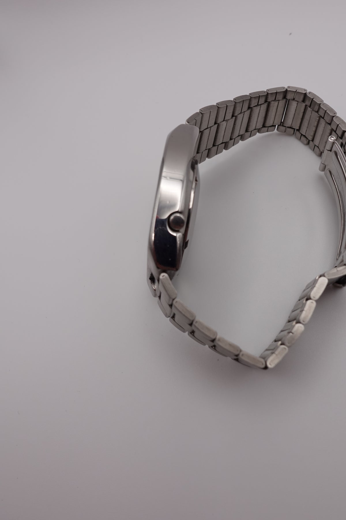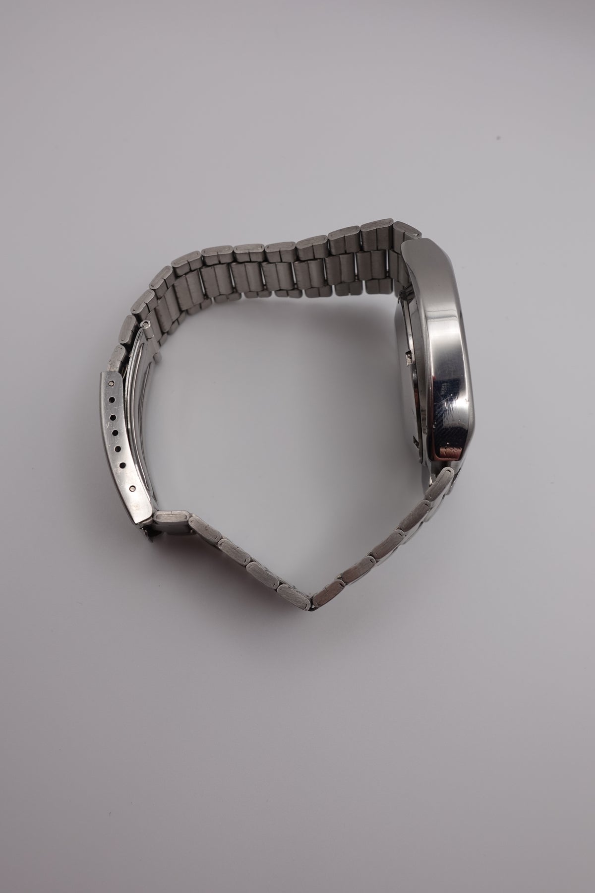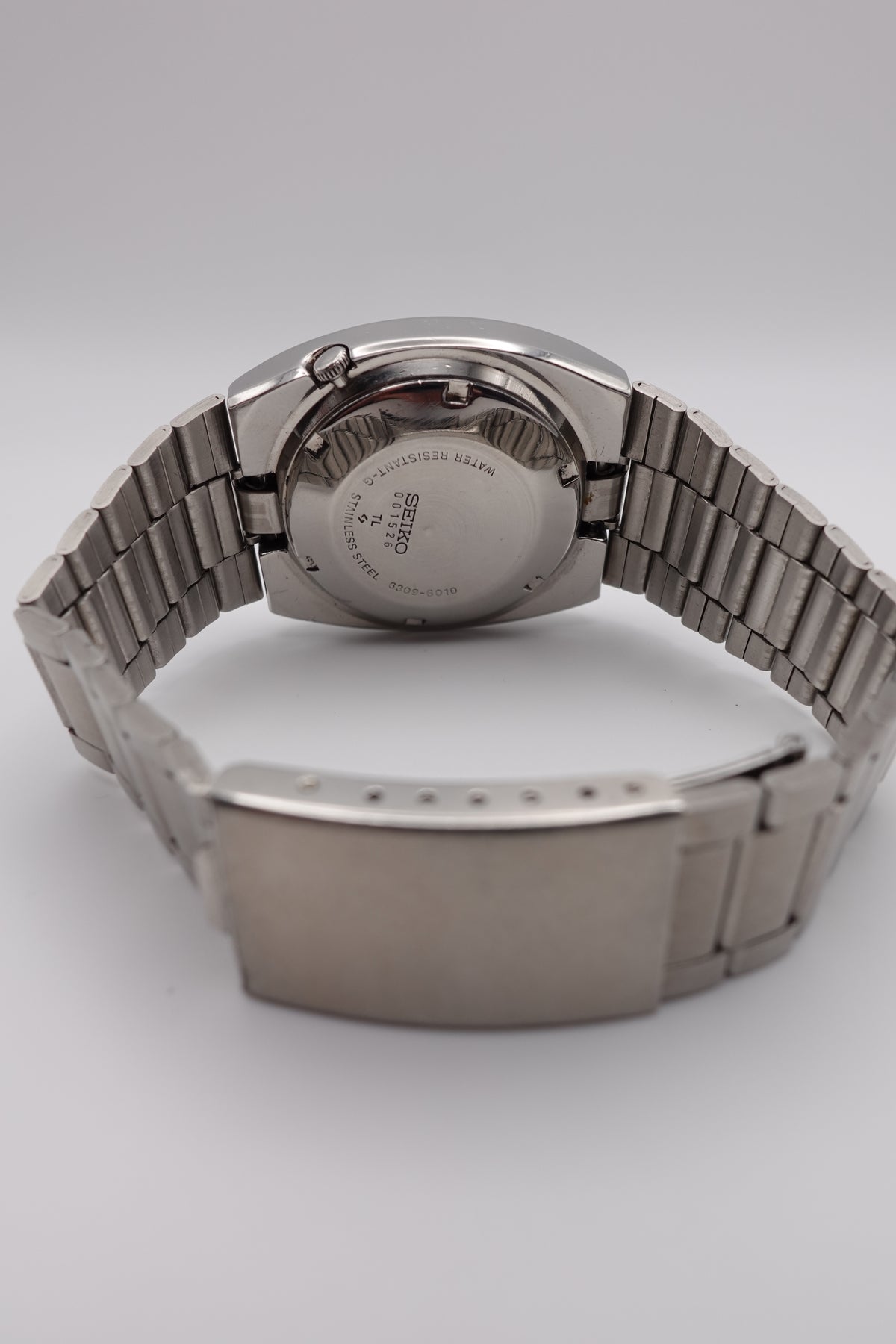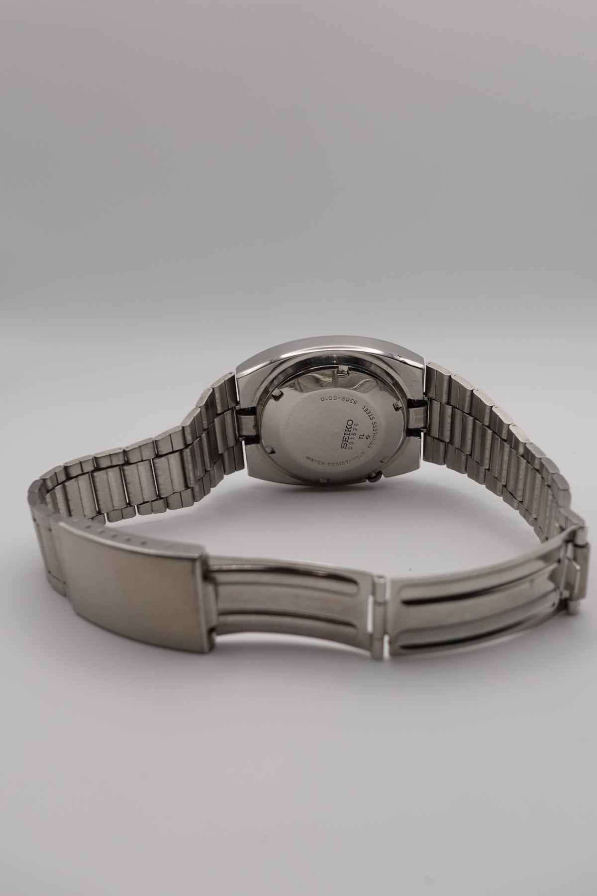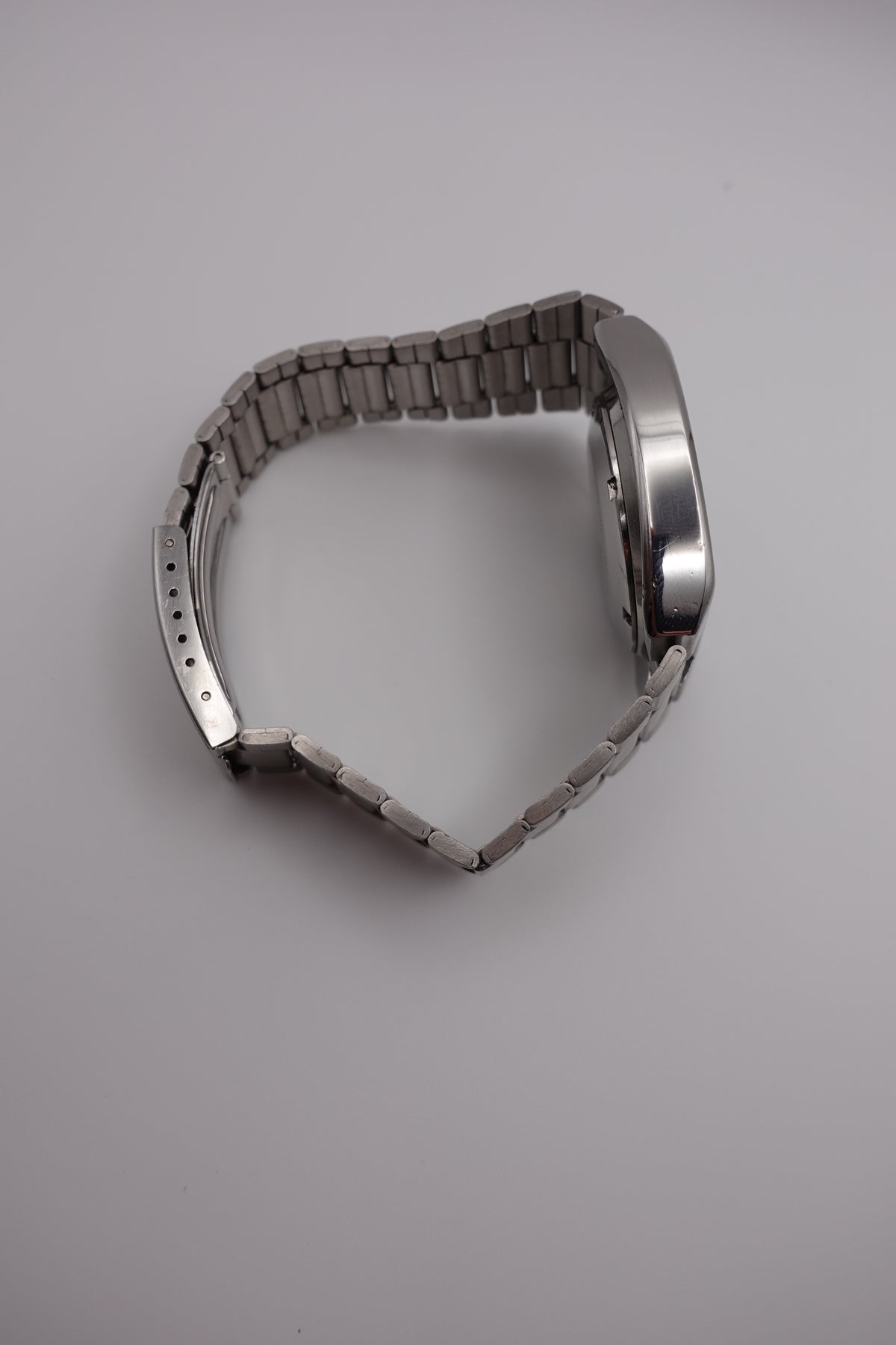 Stunning vintage Seiko 5 automatic with a tv dial. The watch is in fantastic condition and showing very little signs of wear or of age. It has a beautiful sunken dial in a striking silver and black. The clasp is unfortunately not original, though the bracelet still appears to be original.