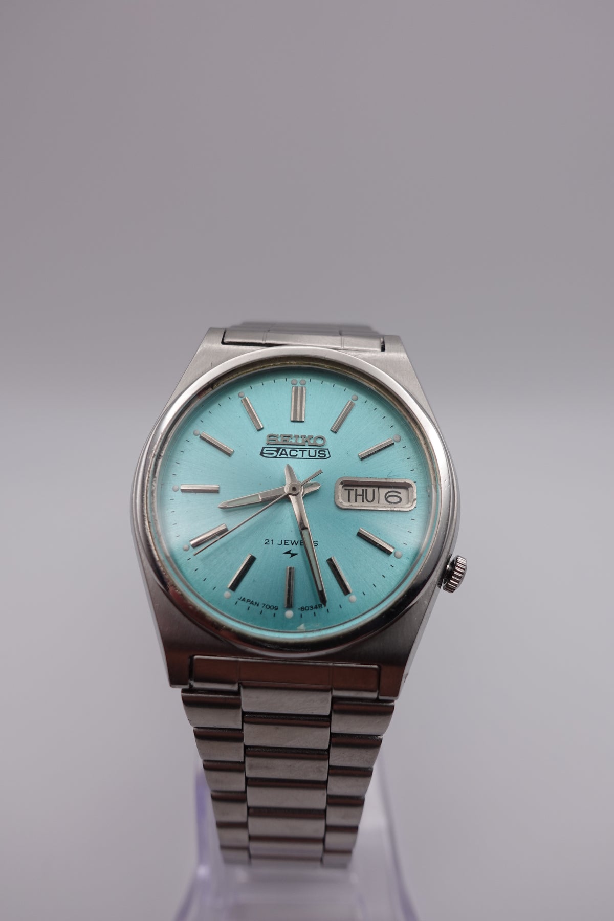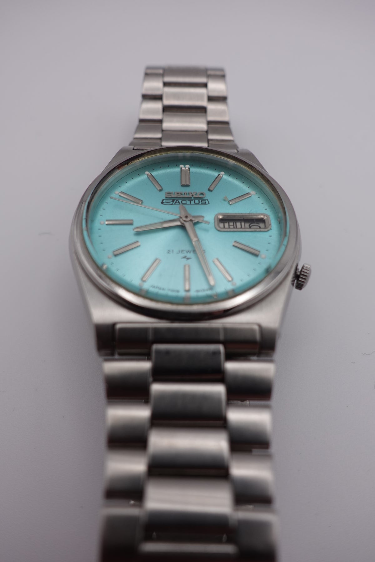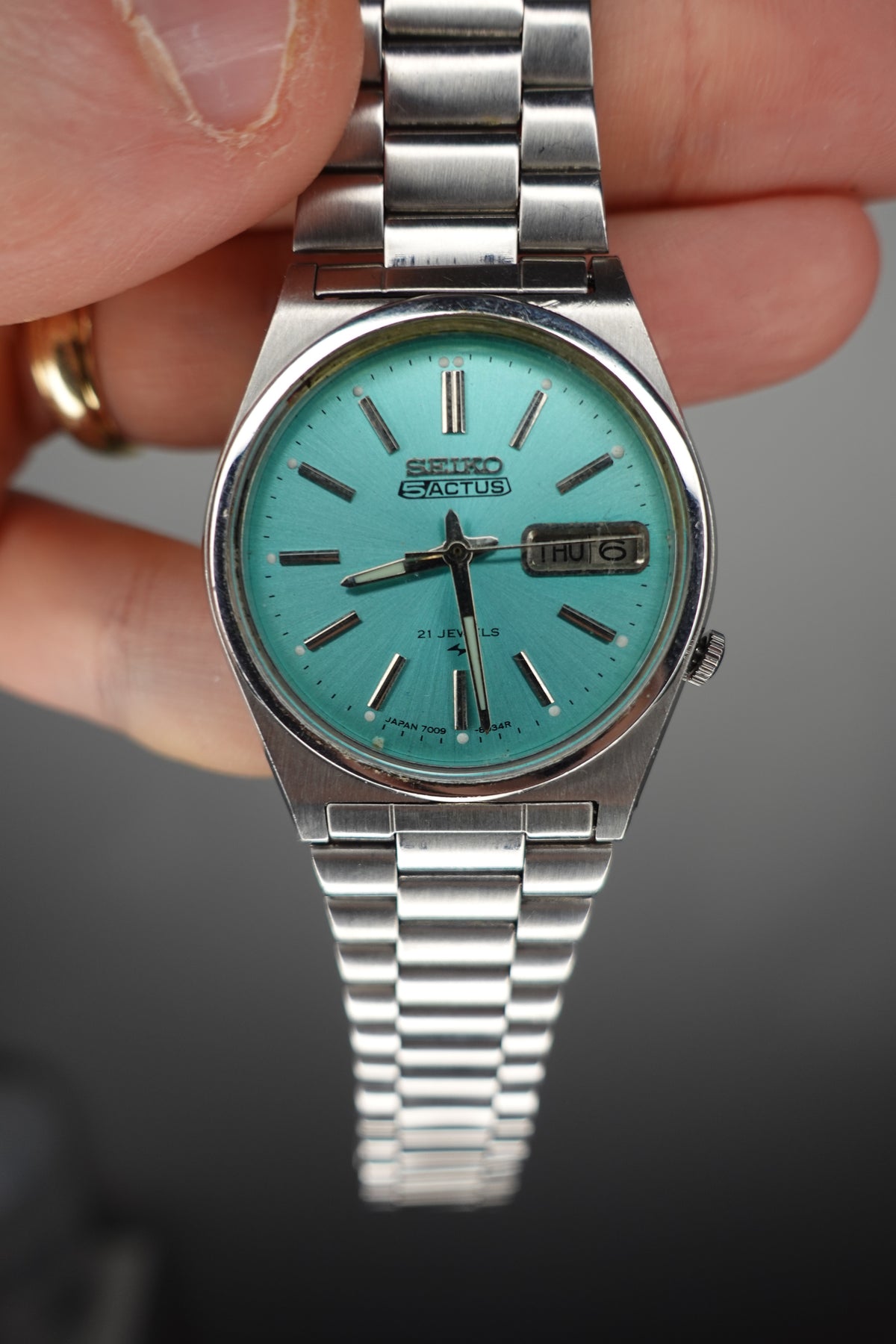 Beautiful Seiko 5 Actus with an extremely rare tiffany blue dial completely original and in excellent condition. Highly highly sought after dial colour, with many new watches opting for the tiffany blue dial.