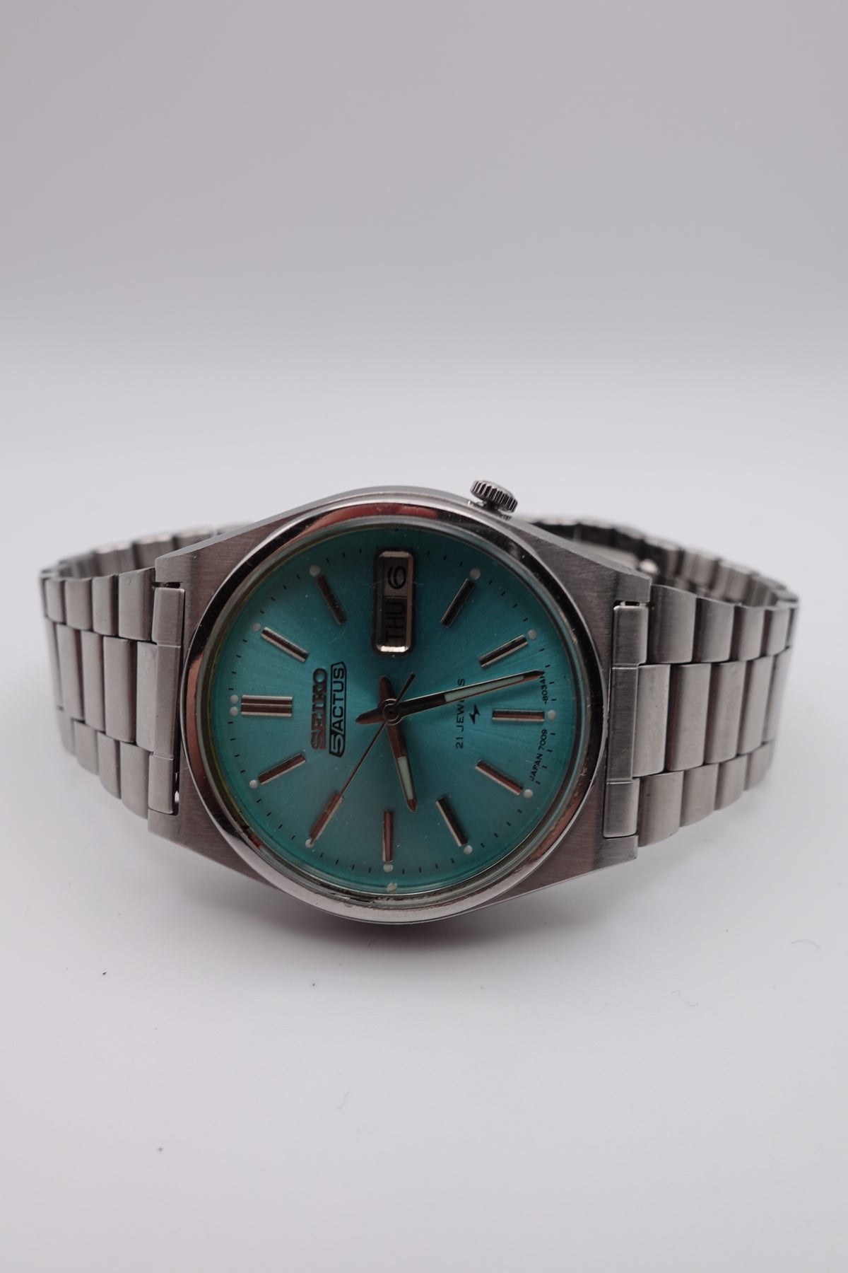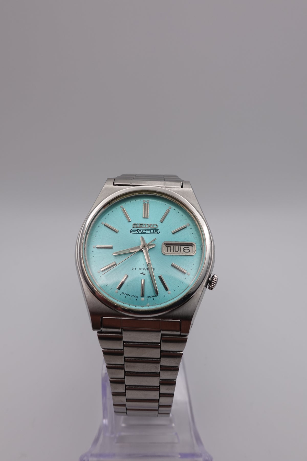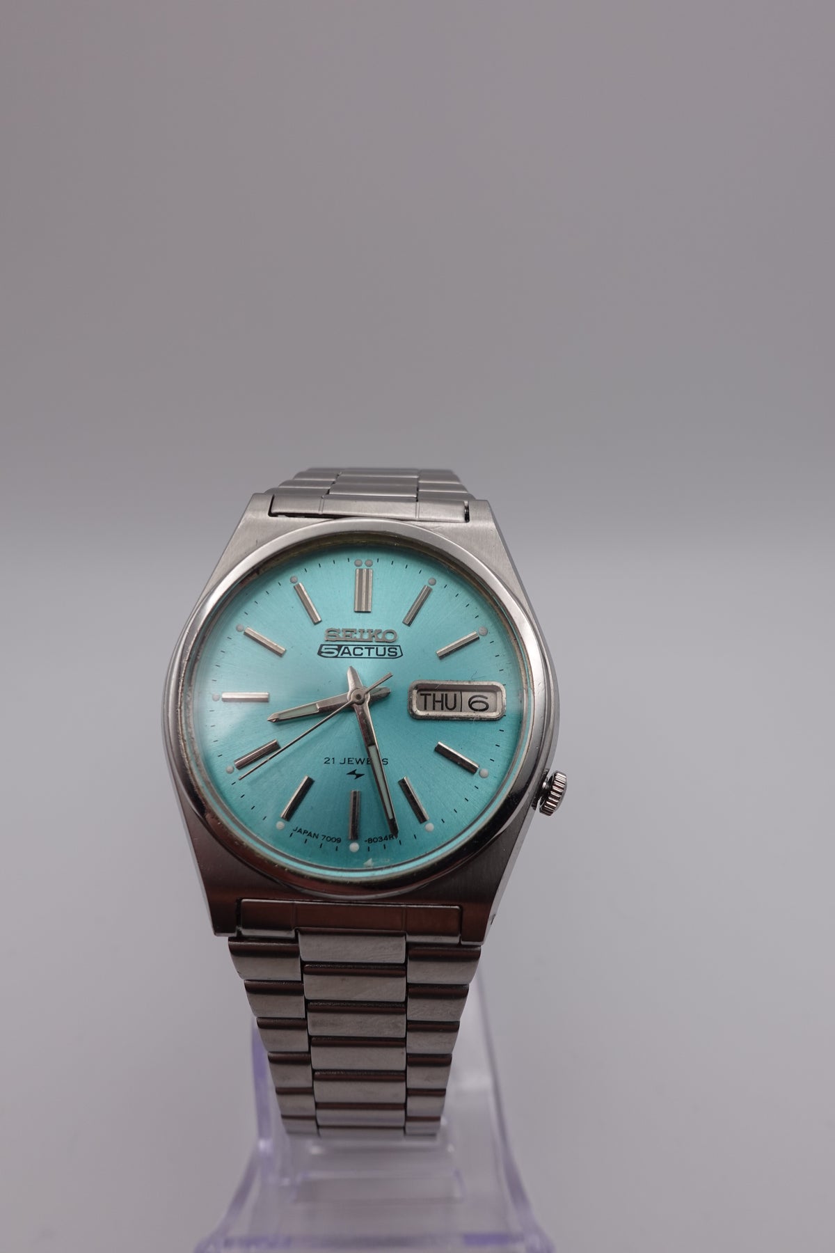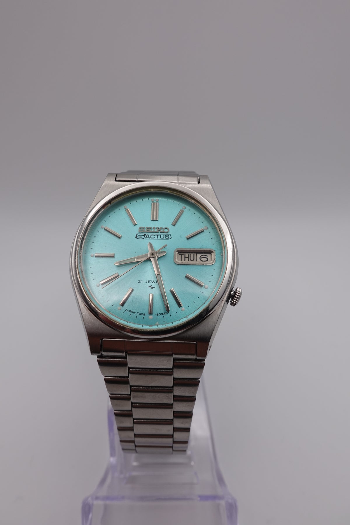 Vintage Seiko Automatic 5 Actus 21 Jewel Day Date Tiffany Blue Dial 7009-821J Men's Watch