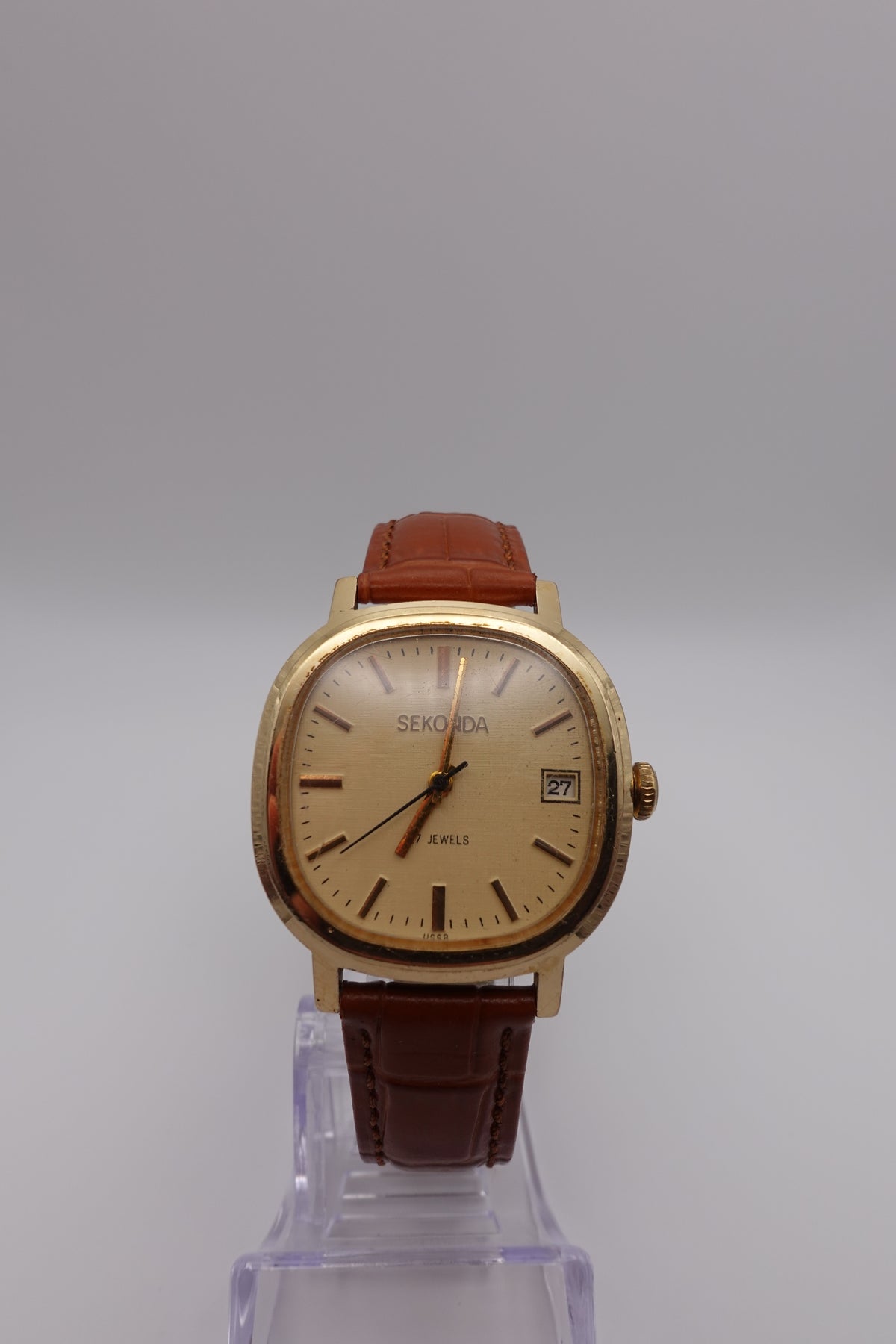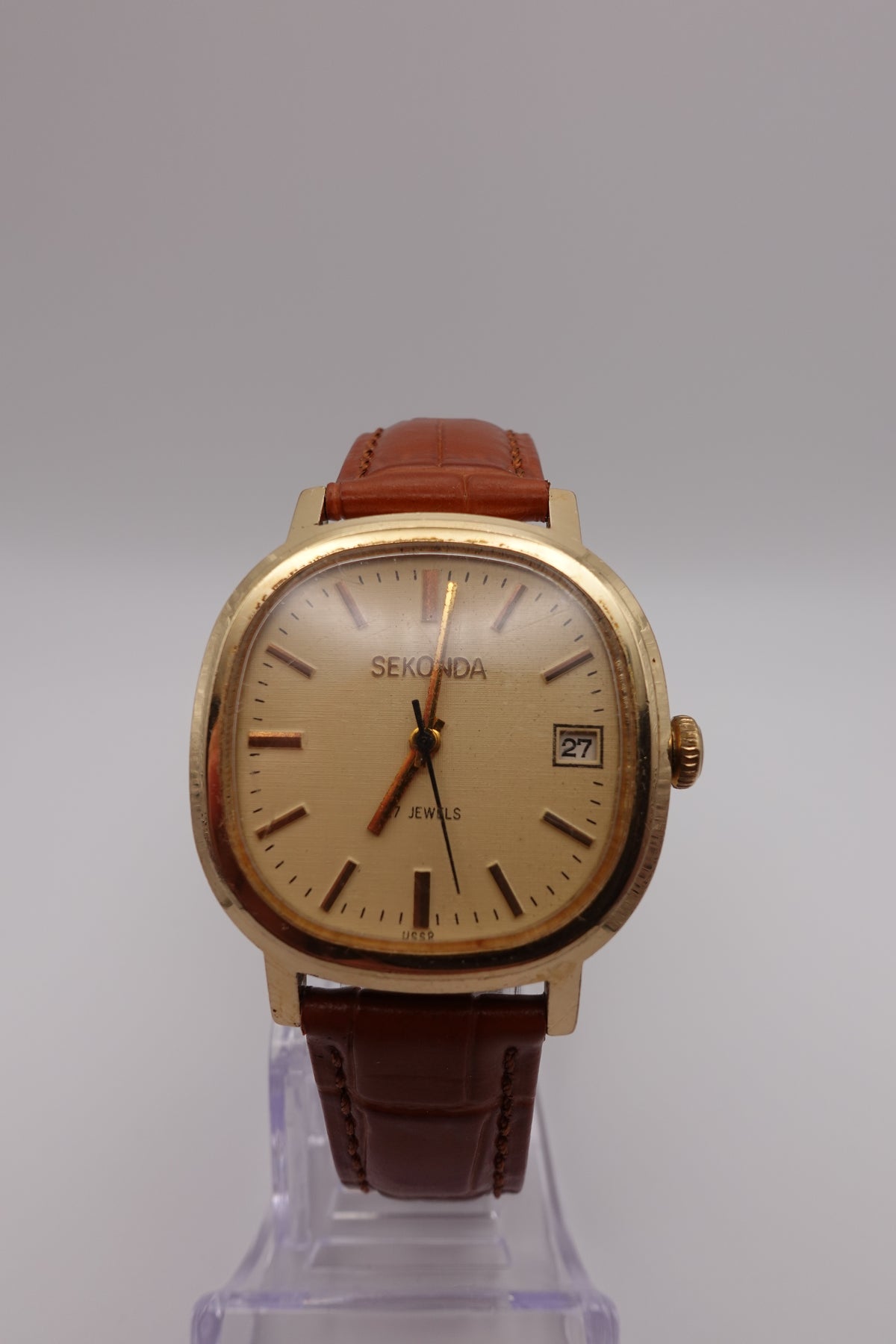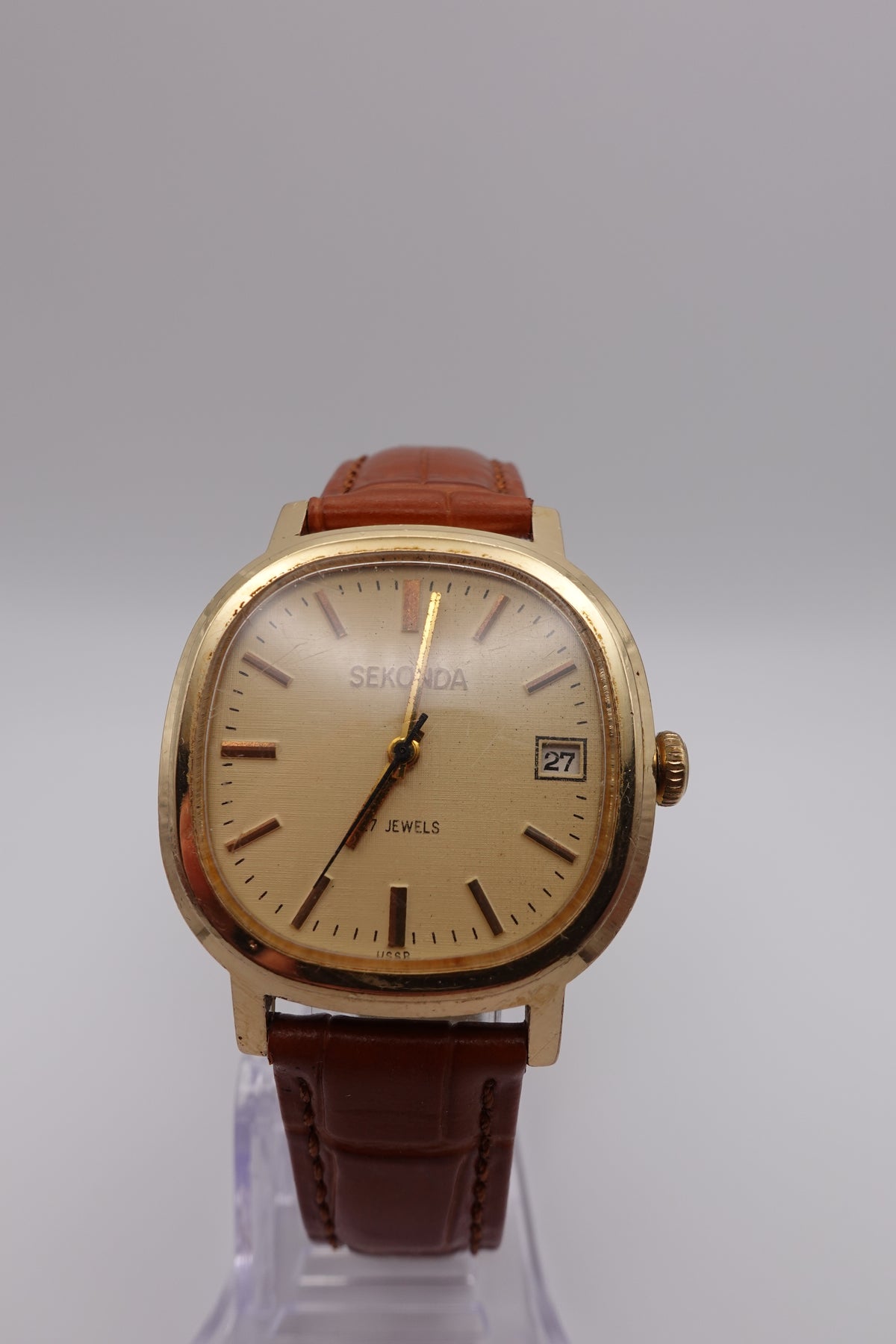 Sekonda Hand Wind 17 Jewel Date Gold USSR Made 784824 - Vintage