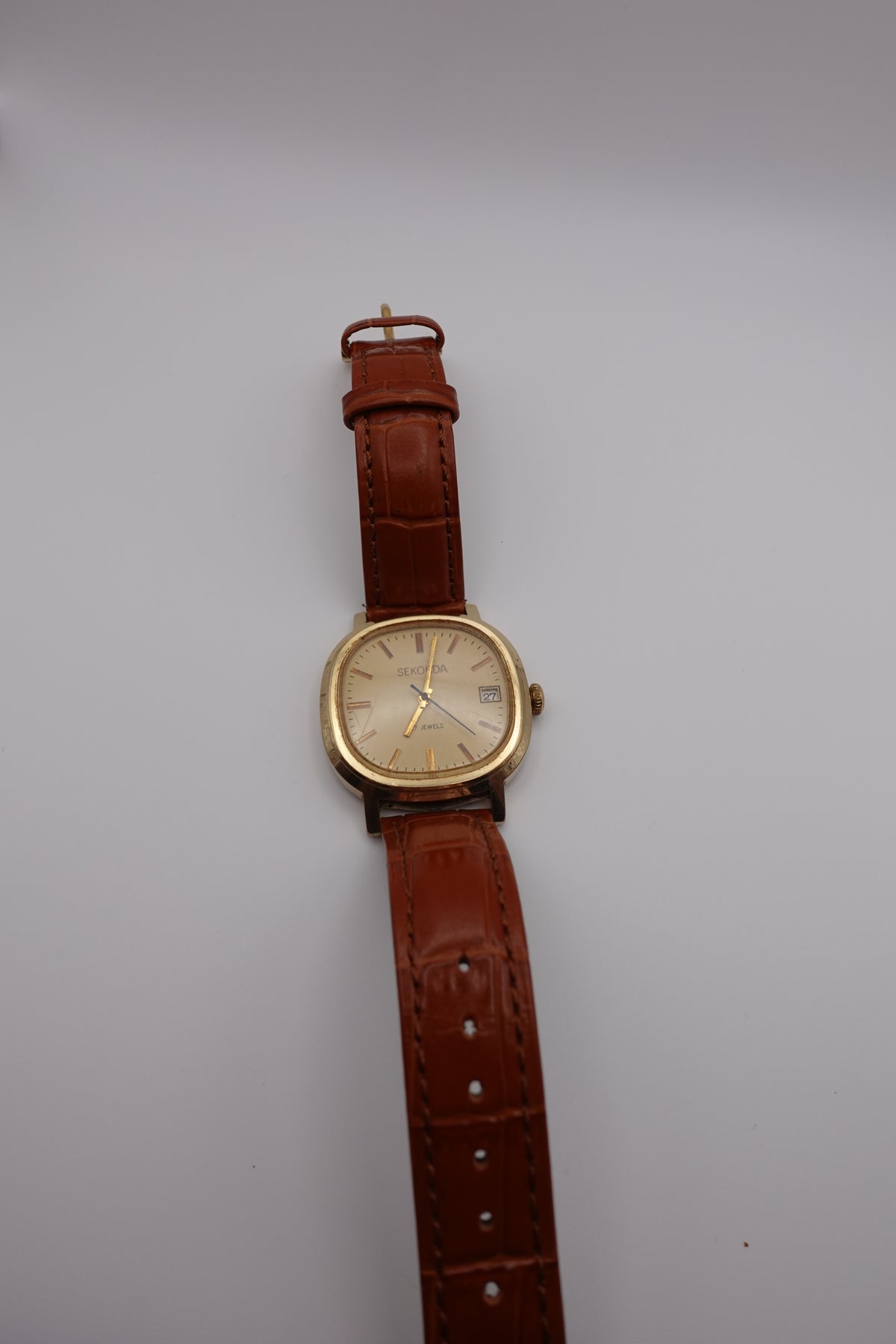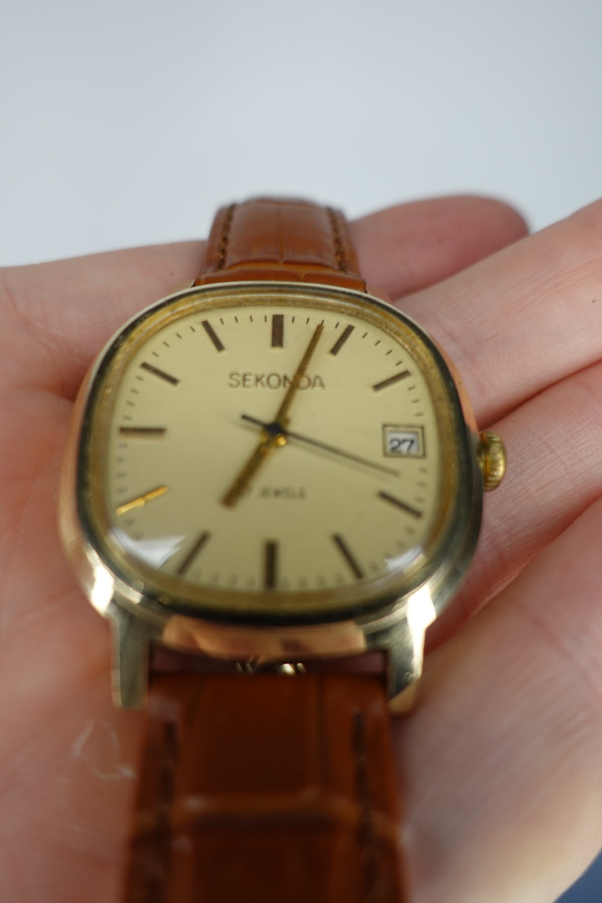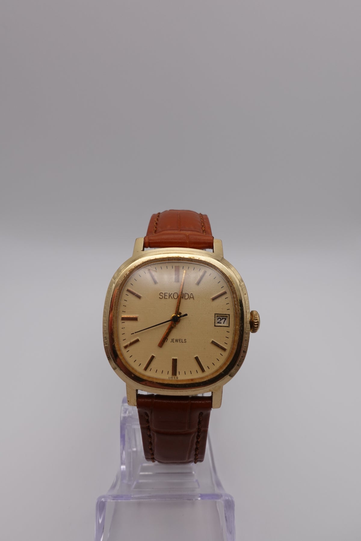 Sekonda Hand Wind 17 Jewel Date Gold USSR Made 784824 - Vintage